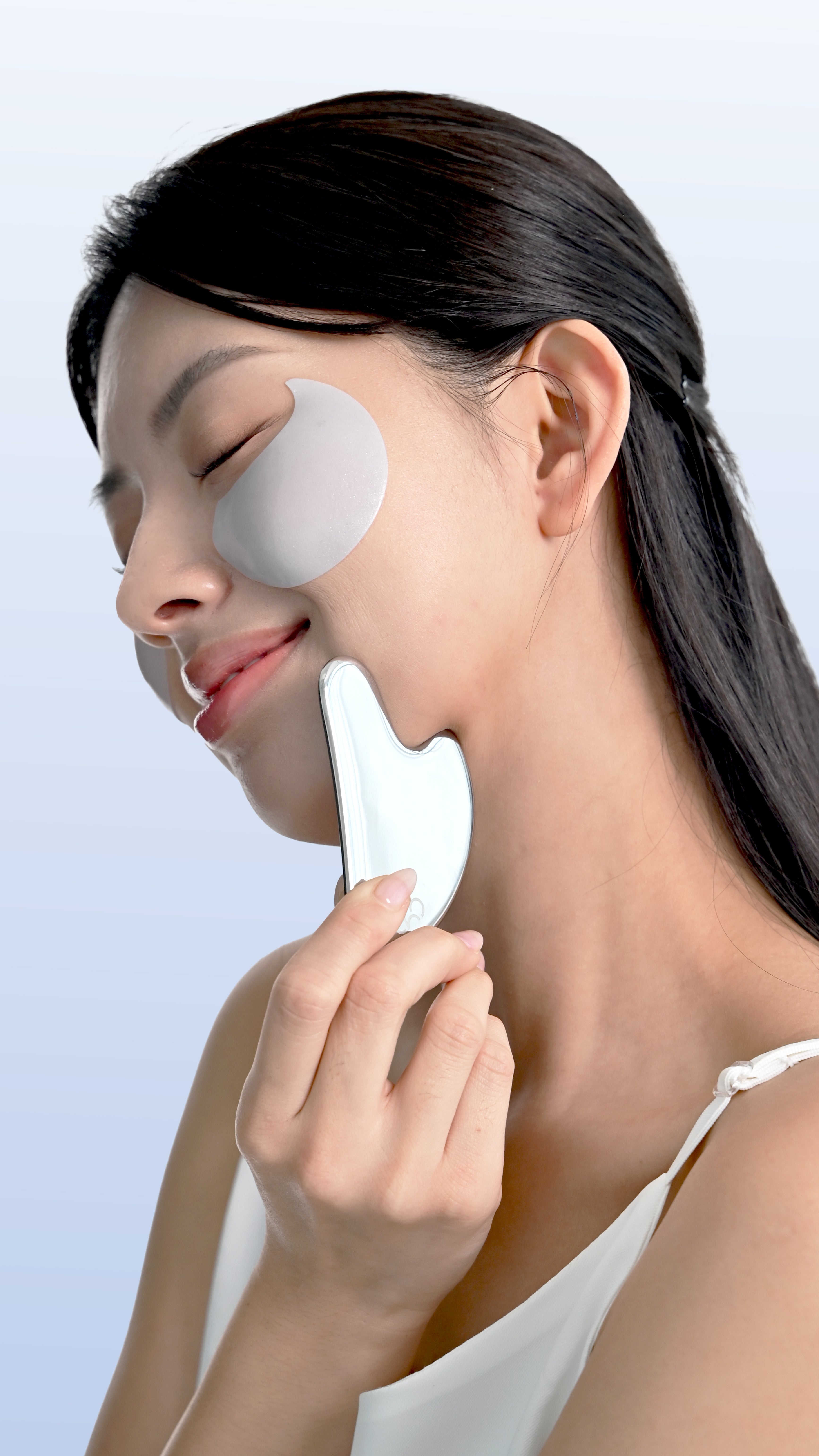 Elevate your routine with our cooling Renewal Gua Sha, designed to refresh, depuff, and enhance your eye-care ritual.